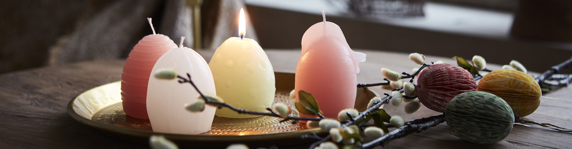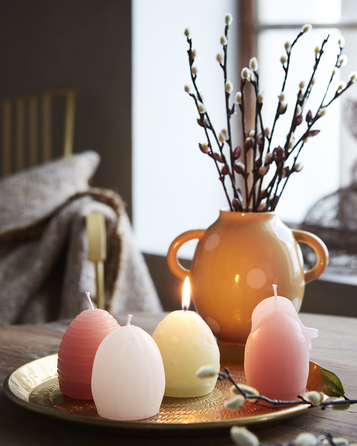 Med ljus är det lätt att förändra och förstärka årets högtider. Ljus i vårens färger brinner vackert på bordet när det är dags för årets påskbrunch.