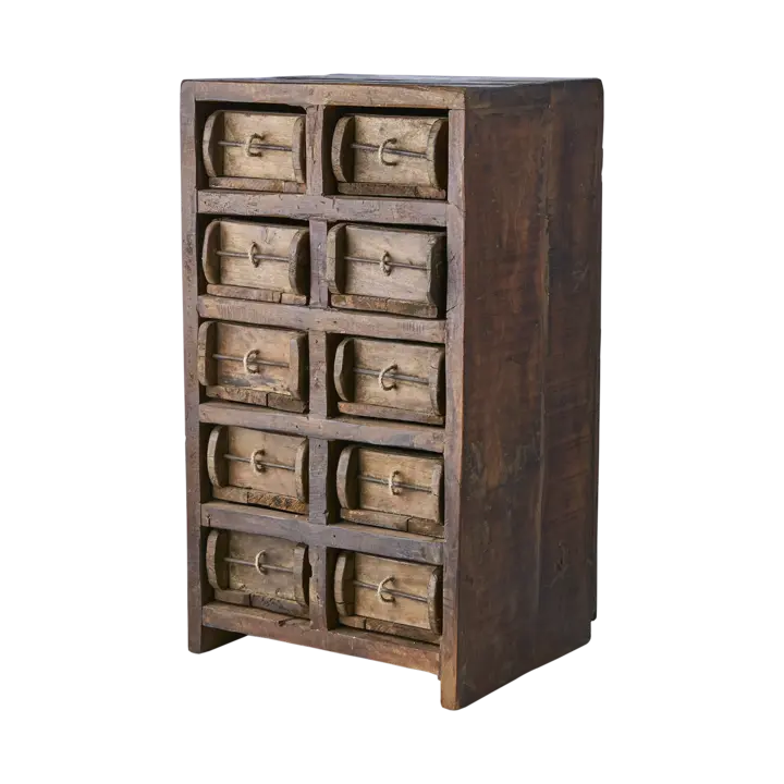 Skåp tillverkat av gamla tegelstensformar.