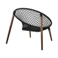 Handflätad makramé i bomull på ben av teak. Patineras av väder och vind, ej behandlade för att var ute i fukt och regn. Förvara under skydd eller inomhus vid fuktigt väder. Maxvikt 150 kg, Testad för EU normerna.